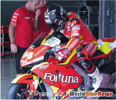 マルコ・メランドリは69周回を走り終え、2分02秒29という高タイムをマークした。これは、キャメル・ヤマハのバレンティーノ・ロッシ(2分02秒14)とレプソル・ホンダのニッキー・ヘイデン(2分02秒23)に続く初日の3番手タイムである。