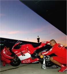 2番手と3番手タイムには好調のドゥカティー勢が続いた。2番手のセテ・ジベルナウは1分40秒504。ロリス・カピロッシは1分40秒798。二人は新しいブリヂストンタイヤのテストを大量に行い、カタールに向けての良い感触をつかんだようだ。