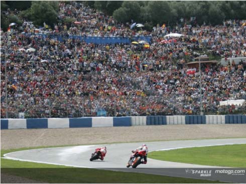 興味深いのはさらに高い視聴率を記録したスペインだろう。衝撃的なMotoGPデビューを飾ったダニ・ペドロサによるところが大きいが、テレビジョン・エスパノーラ(TVE)の視聴率は44.2%に達し、昨シーズンのロッシとセテ・ジベルナウの決戦における数値を6%上回った。また、レース中の平均視聴率は48.31%だった。
