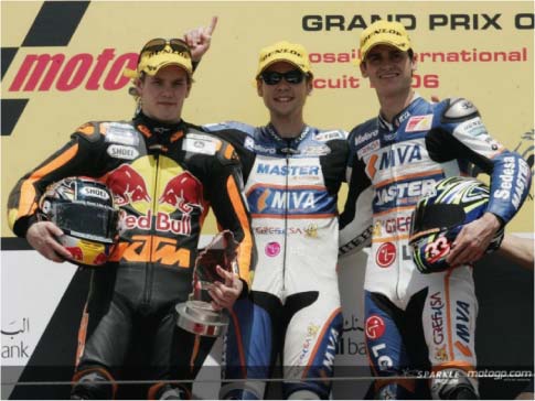 気温25度、路面温度41度、強風のドライコンディションの中、キャリア初のポールポジションからスタートした開幕戦勝者のスペイン人ライダーは、スタートでポジションを落としたが、4ラップ目にトップを奪回すると、5ラップ目には最速ラップをマーク。その後もコンスタントにライバルたちを引き離し、02年にアルノー・ヴァンサンが年第8戦イギリスGPと第9戦ドイツGPで2連勝して以来、56戦続いた連勝者なしの記録に終止符を打った。
