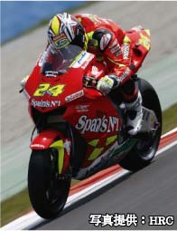 「今日は最初のフリーでRC211Vのバランス調整をしました。午後は微調整レベルのセッティングしかせずに、殆どをレースに一番適したタイヤを探る時間に費やしています。」