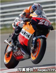 昨年は250ccでケーシー・ストーナーに優勝を奪われ2位に終っているダニ・ペドロサは初日4番手タイムとなる1分54秒001を記録したが、本人にとってはフラストレーションのたまる一日だったようだ。朝から電子制御系のトラブルを抱え、タイムアタックをオイル旗で中断されたらしい。