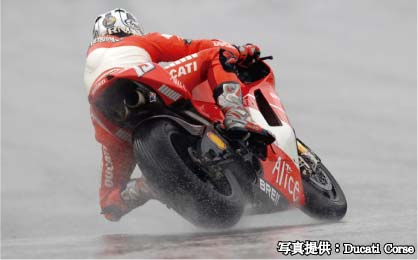 「このバイクを雨ではそんなに乗っていませんが、思ってたよりはこの状況でも良く乗れてると思いますよ。ドゥカティーとブリヂストンが凄く頑張ってくれたので最高です。」