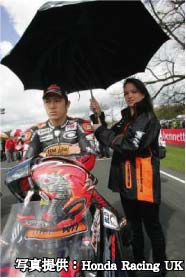1列目、ポールポジションには、ランキングトップのチームメイトを抑えてドゥカティーのレオン・ハスラムがつけた。2番グリッドは清成選手のチームメイト、ホンダのカール・ハリス。