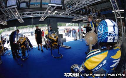 加賀山選手はクラッチの問題が解決せずに無念のリタイア。諦めがついたという表情で家族の元に戻る加賀山選手だが、今年のアルスター・スズキはクラッチ関係のトラブルが頻発している。