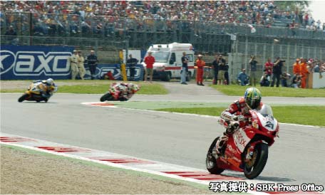 5月7日、SBK第4ラウンドがイタリアのモンツァで決勝を迎えた。若干のウェット路面に各ライダーが悩まされた予選1日目とは異なり、3日目の午前(レース1)と午後(レース2)の両レースとも、晴天のドライコンディションに恵まれている。気温は23度と、ほぼ2日目と同じコンディションだ。