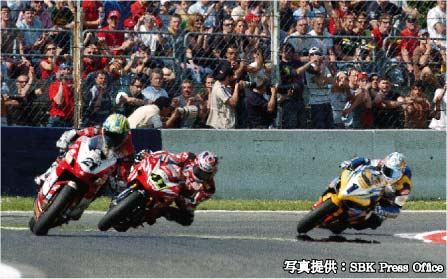 ドゥカティーのトロイ・ベイリスが余裕のチェッカーを受ける中、再びバロスにコーサーと芳賀選手がせまるが差は縮まらない。5秒遅れで2位のチェッカーを受けたのはクラフィ・ホンダのアレックス・バロス、芳賀選手を交わしたアルスター・スズキのトロイ・コーサーは3位表彰台を獲得した。ヤマハ・イタリアの芳賀紀行選手は惜しくも表彰台を逃し4位。
