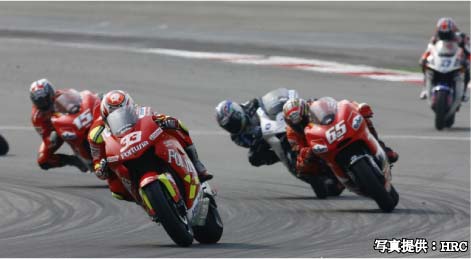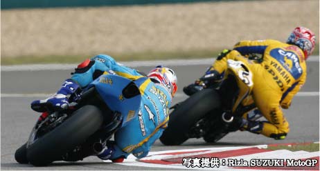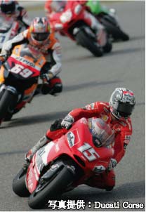 続いてニッキー・ヘイデン、フォルツナ・ホンダのマルコ・メランドリ、ドゥカティーのロリス・カピロッシ、10番手の玉田選手が列をなして先頭を追う。そのすぐ真後ろにつけていたバレンティーノ・ロッシが玉田選手を交わして10番手に浮上した。