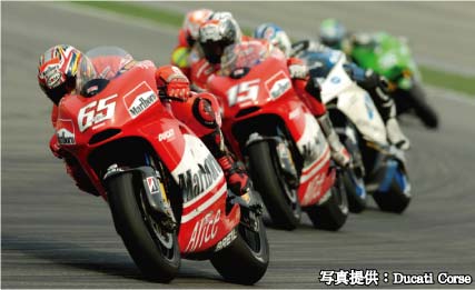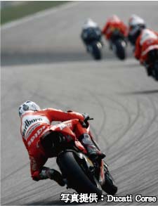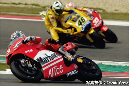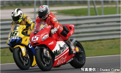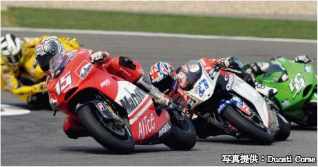 ドカティー2名の前にはフォルツナ・ホンダのマルコ・メランドリが走行している。