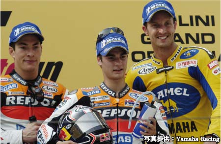 2位にはペドロサのチームメイトのニッキー・ヘイデン、3位には開幕から不調が続いたキャメルヤマハのコーリン・エドワーズが嬉しい表彰台を獲得した。