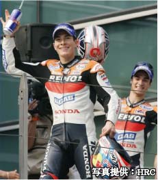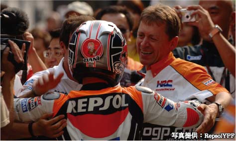 また、上海サーキットを訪問していたホンダの福井威夫社長もその場に現れ、ペドロサの初優勝を称えている。