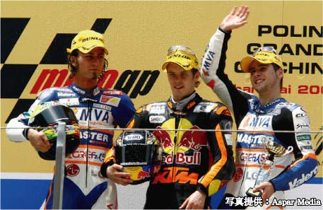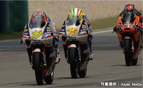 開幕戦から前回のトルコGPを通して絶好調のマステルMVAアスパルチーム(アプリリア)は、今回の予選ではセルジオ・ガデアが1日目の転倒で左手首を捻挫し、そのまま調子を上げる事なく13番グリッドとなるなど、上位列への進出にやや苦しんだようだ。