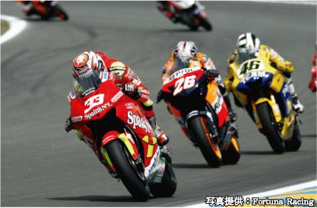 6番手の中野選手の後ろには、トニ・エリアス、ストーナー、ヘイデン、バーミューレン、そして11番手の玉田選手が続く。玉田選手は前日の予選でも漏らしていたように、バイクのセッティングが金曜日午後のフリープラクティスの状態に戻せておらず、ハンドリングに問題を抱えて思うように高速コーナーでスピードが出せていない。