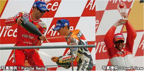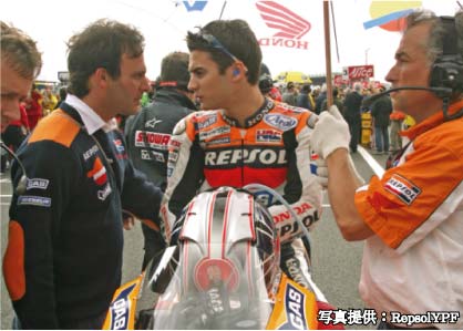 パルクフェルメでは、前回の優勝とは異なり、今回はいつも通りあまり表情を変えないペドロサにプーチが語りかけている。