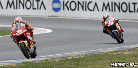 後方ではニッキー・ヘイデンに追いついたストーナーが激しくヘイデンから5番手を奪おうと攻撃を仕掛けている。