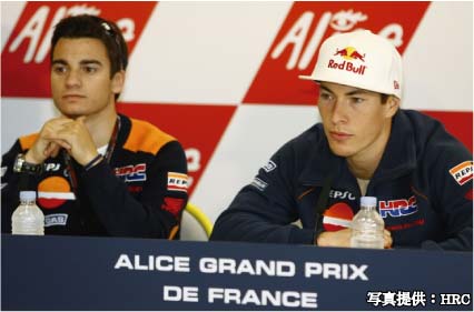 ランキングトップのニッキー・ヘイデンと、フランスGPでは中国の優勝に引き続き表彰台を獲得したダニ・ペドロサの2名を擁する好調のレプソル・ホンダ・チームは、この日のテストでレースに向けたマシンチューニングと、レインタイヤのテストを行っている。